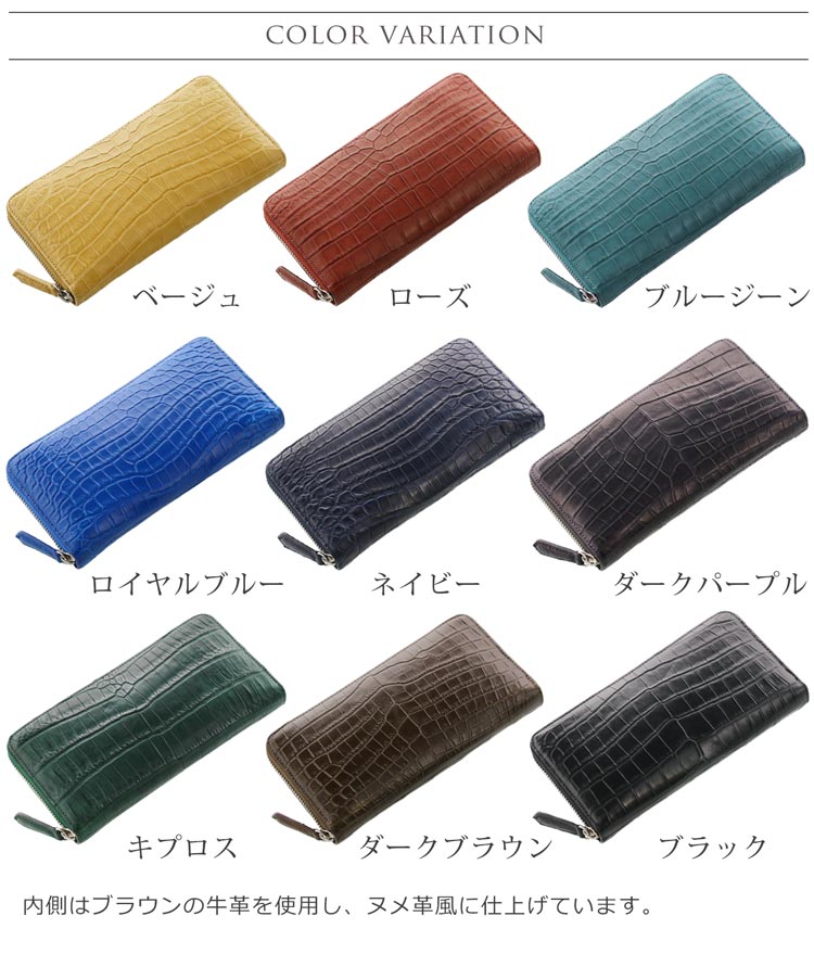 セールアイテム→商品詳細 ●特長ラウンドファスナー/通帳が入る/パスポートが入る ●デザイン ナイルクロコダイルで仕立てた長財布です。